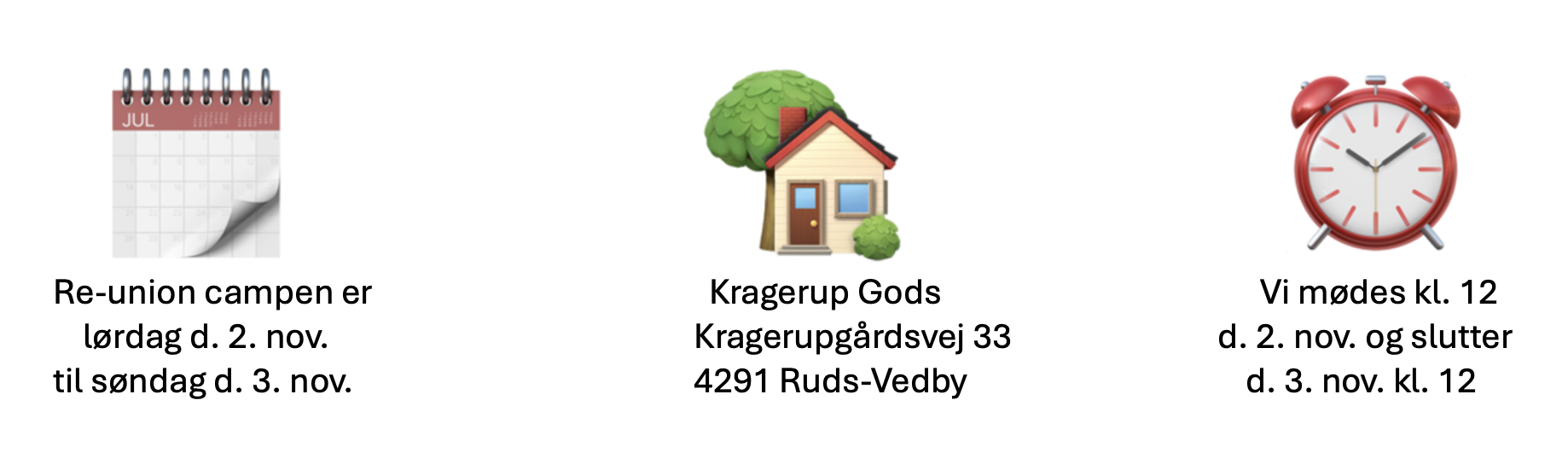 Klik nedenfor for at downloade pakkelisten og få styr på alle detaljerne inden Re-union campen begynder.