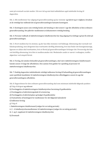 kontingent 4 uger før generalforsamlingen. - Forslag skal være formanden i hænde senest 14 dage før afholdelse af
